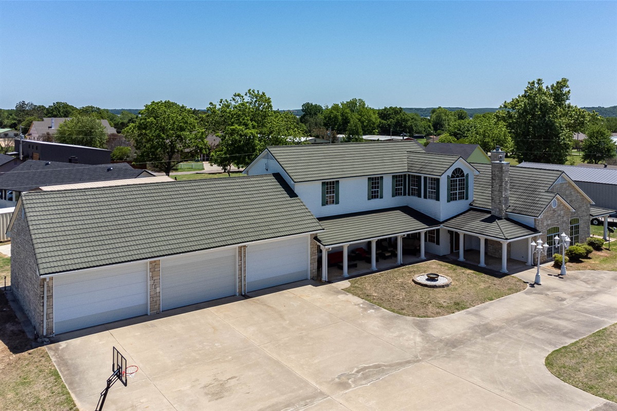 - Driveway and 6-car garage with space for 6–8 cars or 2 boats